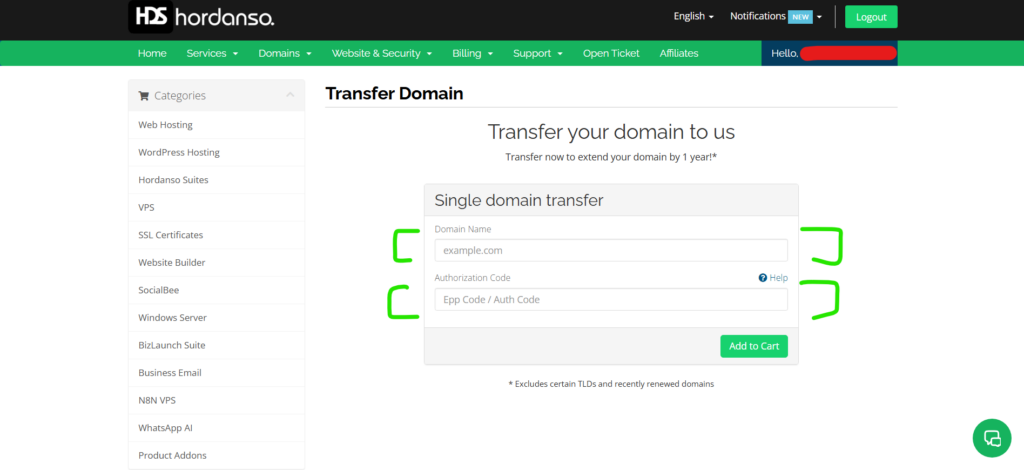 Start by logging into your current registrar’s dashboard to generate your EPP code. Once secured, visit Hordanso LTD’s transfer page to input your domain name and the EPP/Auth code. Ensure your contact details are accurate during this process to avoid delays.