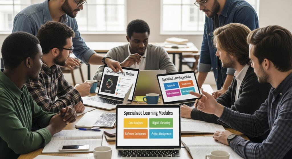 The curriculum is structured into specialized modules that cover the most in-demand skills in today’s market. Each module is designed to be practical, ensuring that interns can apply their learning to real-world scenarios immediately.