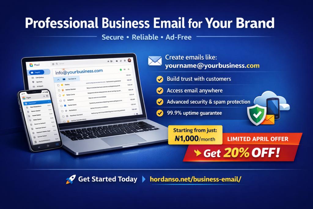 Most importantly, Hordanso understands the unique needs of Nigerian and African businesses, providing solutions that are both globally competitive and locally relevant. That’s why this April, there is a 20% discount on any Business Email package you choose on Hordanso.net. Click HEREand use the COUPON CODE: APRIL2026.
